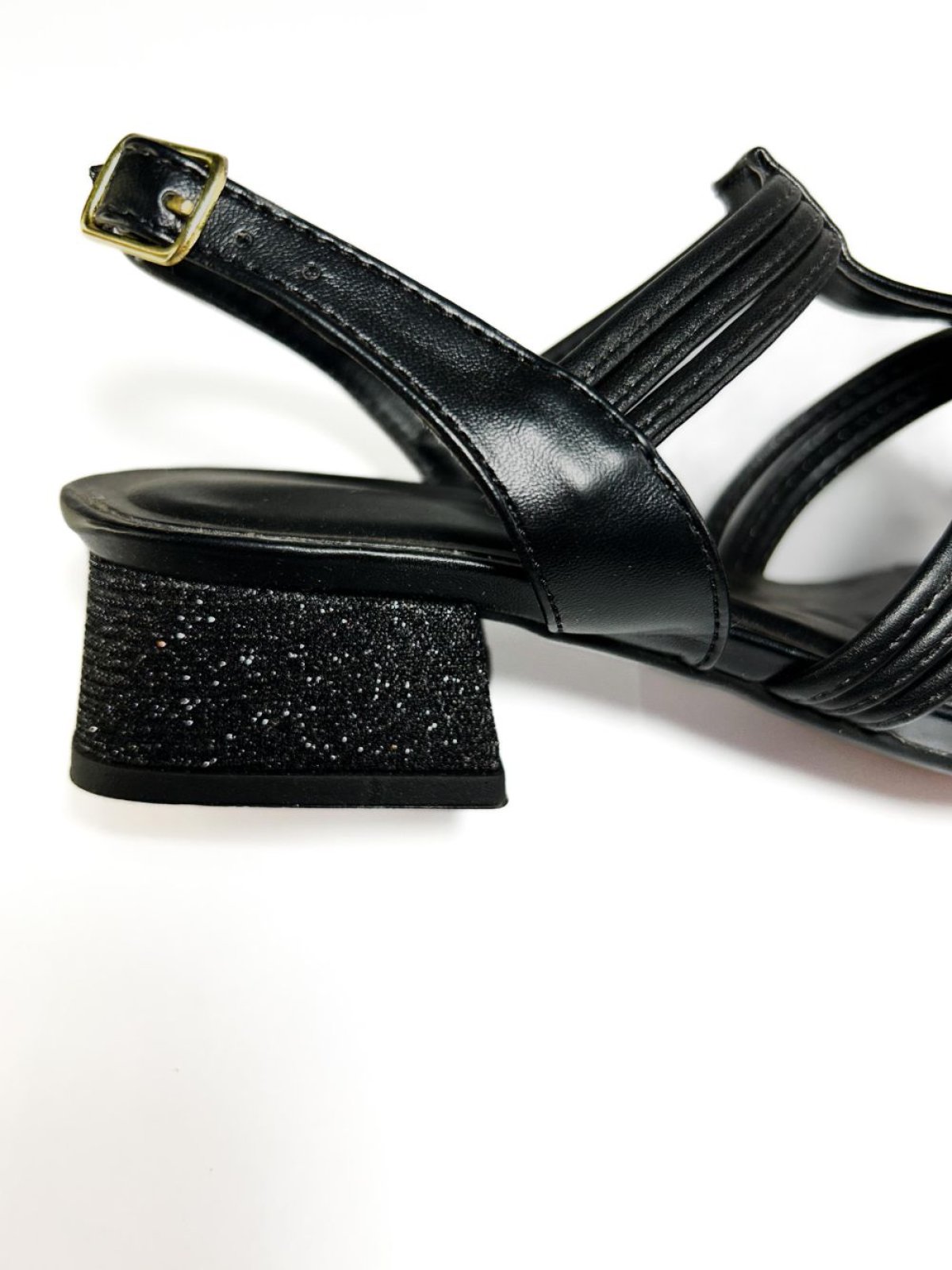 Sandália Salto 3 cm - Preto: Elegante sandália em material napa, com salto de 3 cm que combina conforto e estilo. O detalhe do salto em brilho traz um toque de sofisticação à peça. Conta com solado em TR, proporcionando segurança e durabilidade. Versátil e chic, essa sandália é ideal para completar desde looks casuais até os mais formais, garantindo que você esteja sempre na moda.