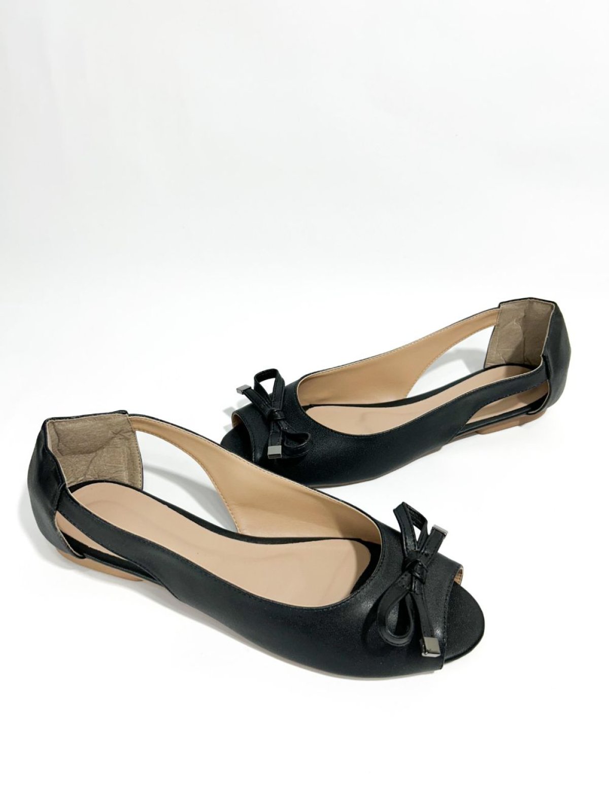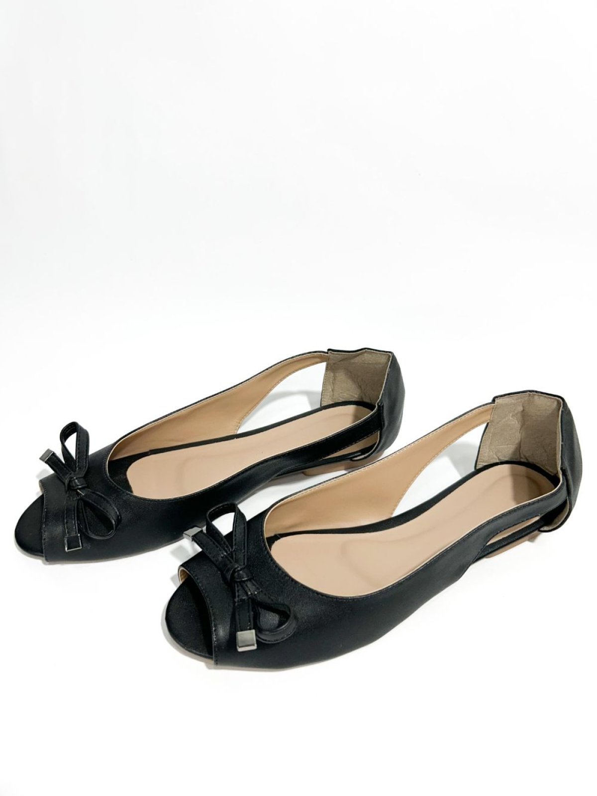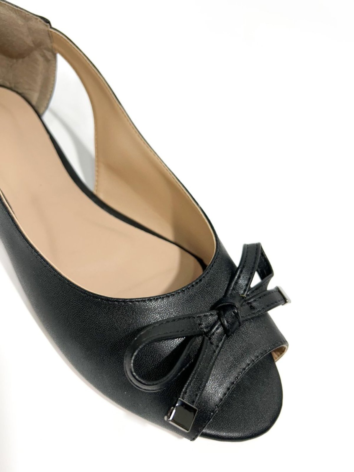 Sapatilha Laço Aberta - Preta: A Sapatilha Laço Aberta Preta é a escolha ideal para quem busca conforto com um toque de charme. Confeccionada em napa de alta qualidade, ela apresenta a frente aberta para os dedos, proporcionando frescor e elegância. O recorte lateral adiciona um detalhe moderno, enquanto o laço delicado completa o visual com sofisticação. O solado em material PVC garante leveza e durabilidade, tornando esta sapatilha perfeita para o uso diário e para diversas ocasiões.
