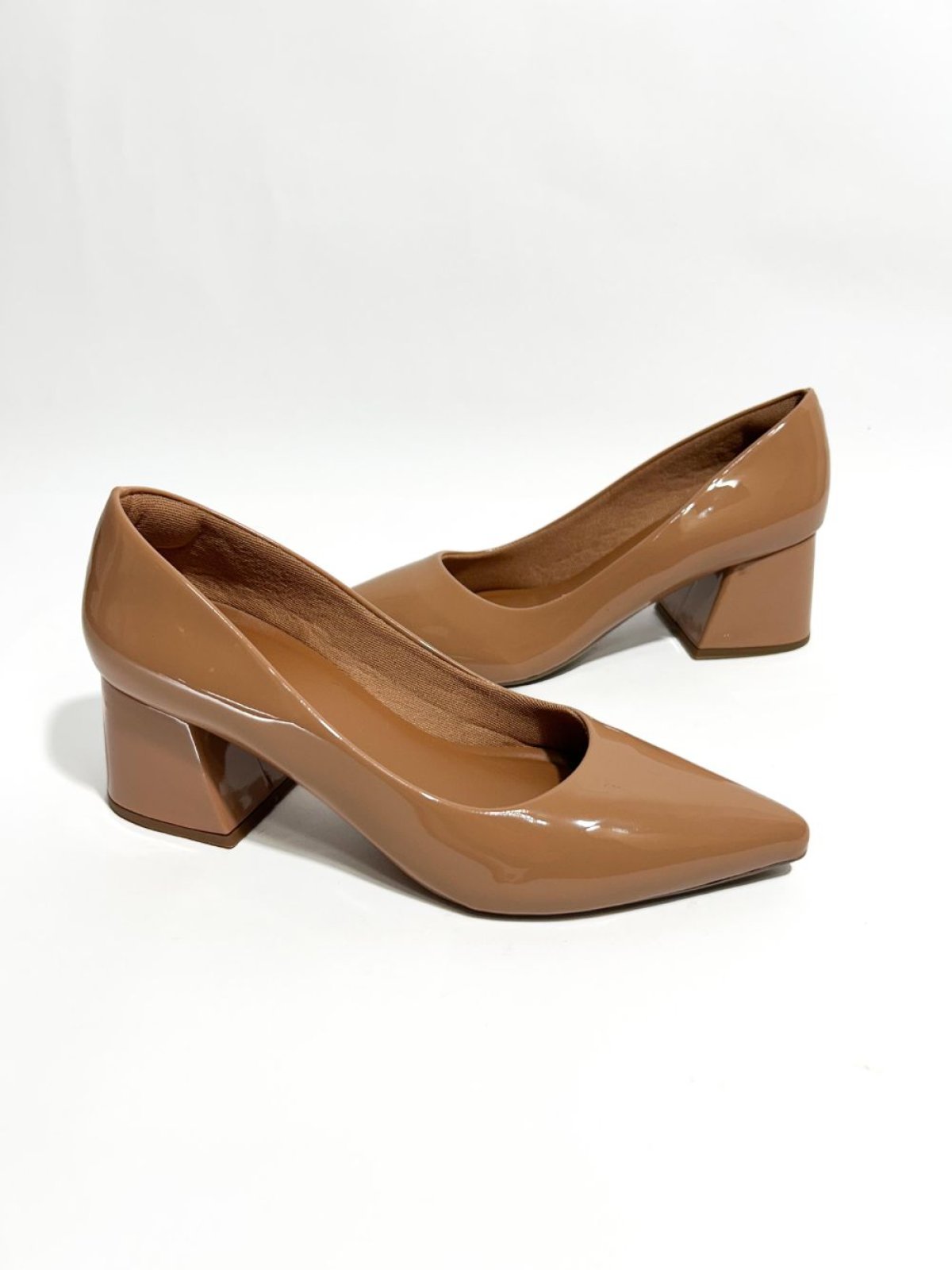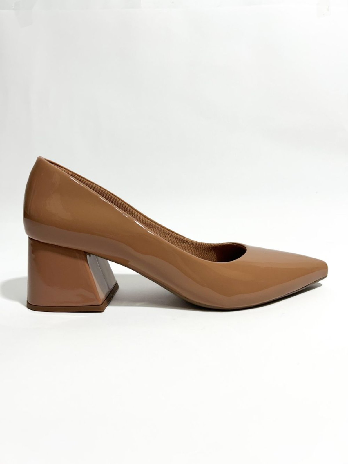 Scarpin Salto Bloco Verniz - Nude: O Scarpin Salto Bloco Verniz na cor nude é a combinação perfeita de elegância e conforto. Confeccionado em verniz de alta qualidade, ele apresenta um brilho sofisticado que eleva qualquer look. Com uma palmilha confort e forro em cacharrel, proporciona um ajuste acolhedor e agradável ao longo do dia. O salto de 5 cm é ideal para quem busca uma altura confortável, garantindo estabilidade em cada passo. O solado em material TR oferece leveza e durabilidade, tornando este scarpin uma escolha versátil para o dia a dia, trabalho ou eventos sociais