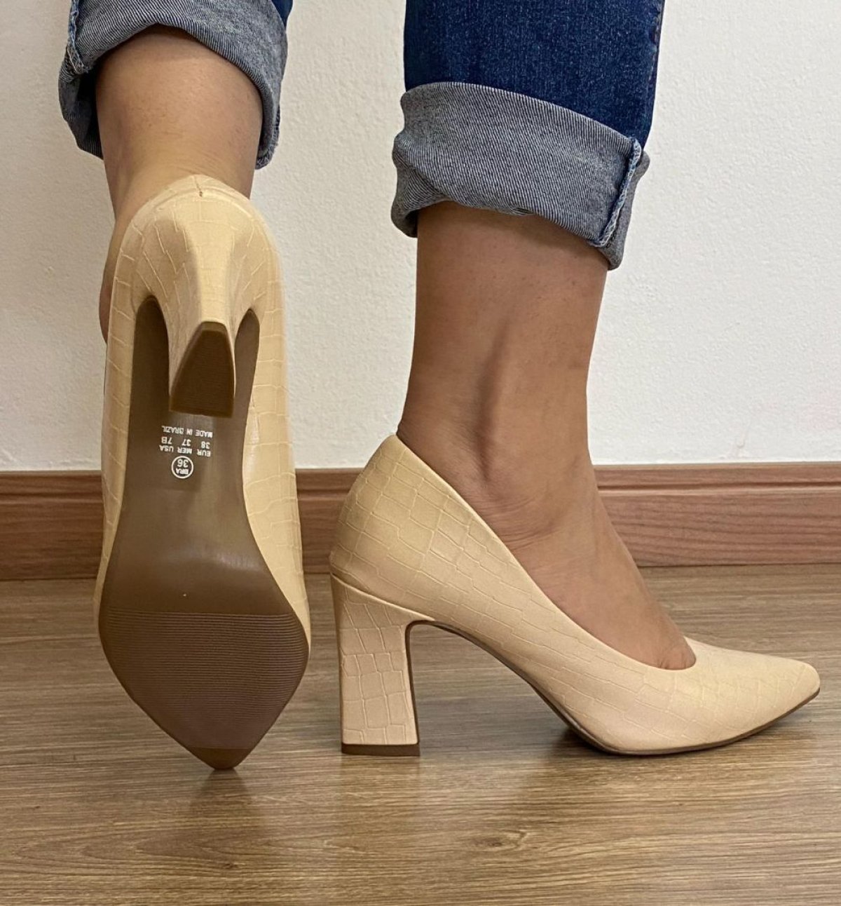 O Scarpin Croco Salto 8cm - Nude é sinônimo de sofisticação com um toque de modernidade. Confeccionado em napa com textura croco, esse modelo traz elegância e personalidade ao visual, ideal para mulheres que buscam estilo e conforto em um único calçado. Seu bico fino alonga a silhueta e confere um acabamento refinado, enquanto o salto de 8 cm oferece a altura ideal para usar durante todo o dia, sem abrir mão do bem-estar. A palmilha comfort e o protetor de calcanhar garantem mais comodidade, e o forro interno proporciona uma sensação de maciez. O solado em TR antiderrapante completa o modelo com segurança e durabilidade. Perfeito para o trabalho, eventos ou ocasiões especiais.