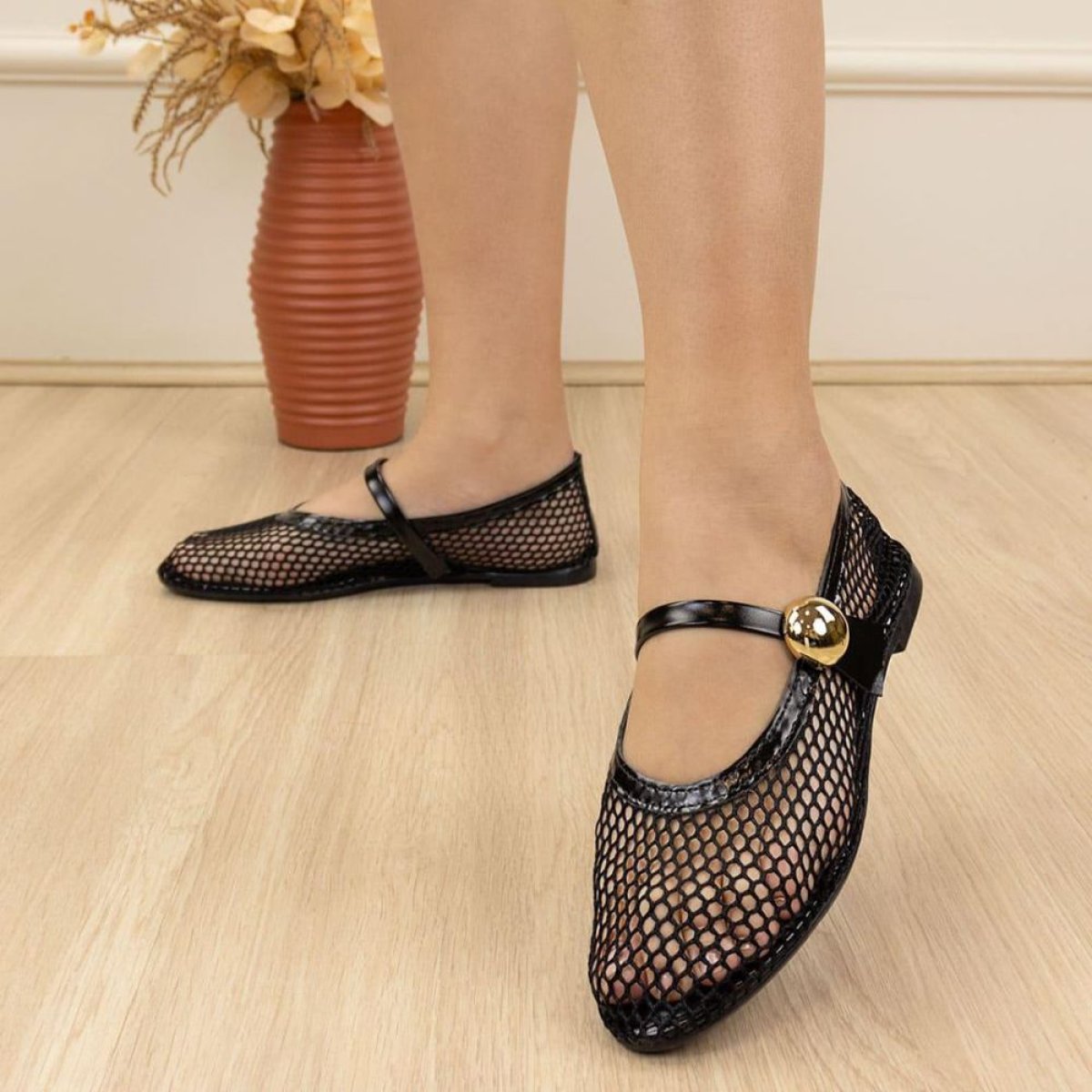 A Sapatilha Rede Confort - Preta é confeccionada em napa com acabamento em formato de rede, oferecendo um visual moderno e sofisticado. O modelo conta com bico quadrado e fecho em fivela que proporcionam ajuste perfeito e segurança ao calçar. Com palmilha Confort e solado em TR, garante leveza e conforto para uso prolongado. Ideal para quem busca praticidade e elegância em um calçado versátil para diversas ocasiões.
