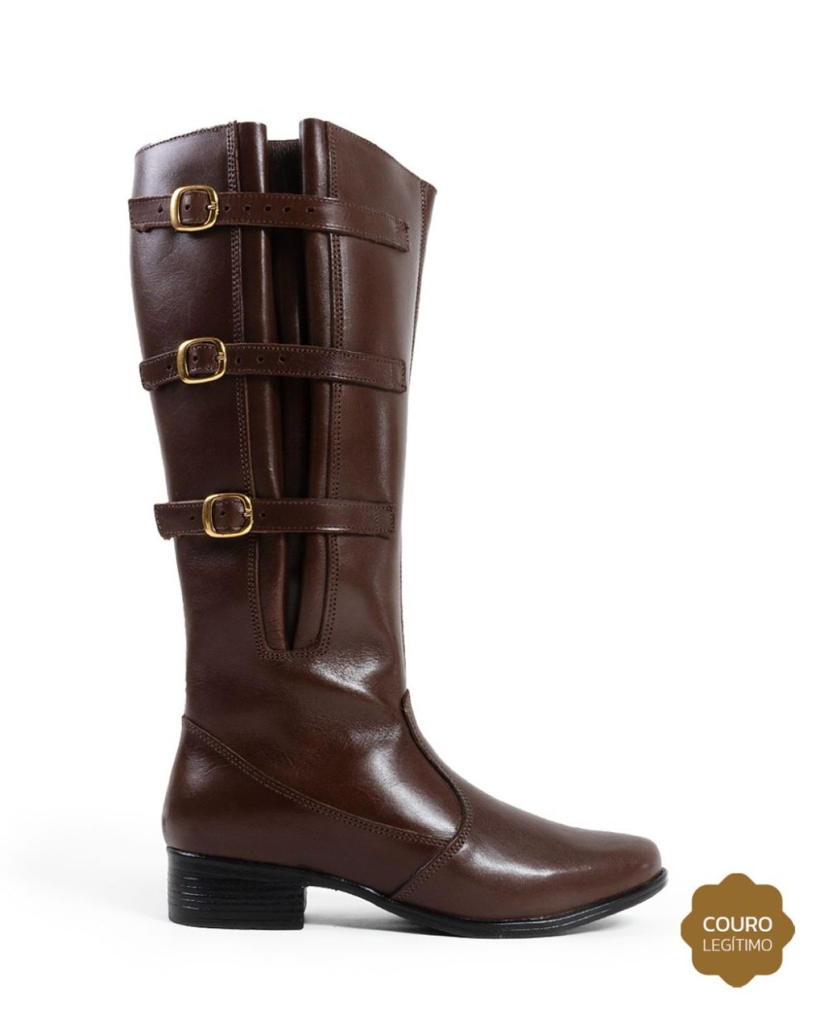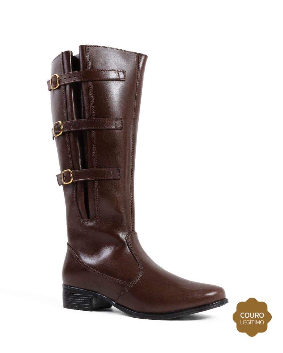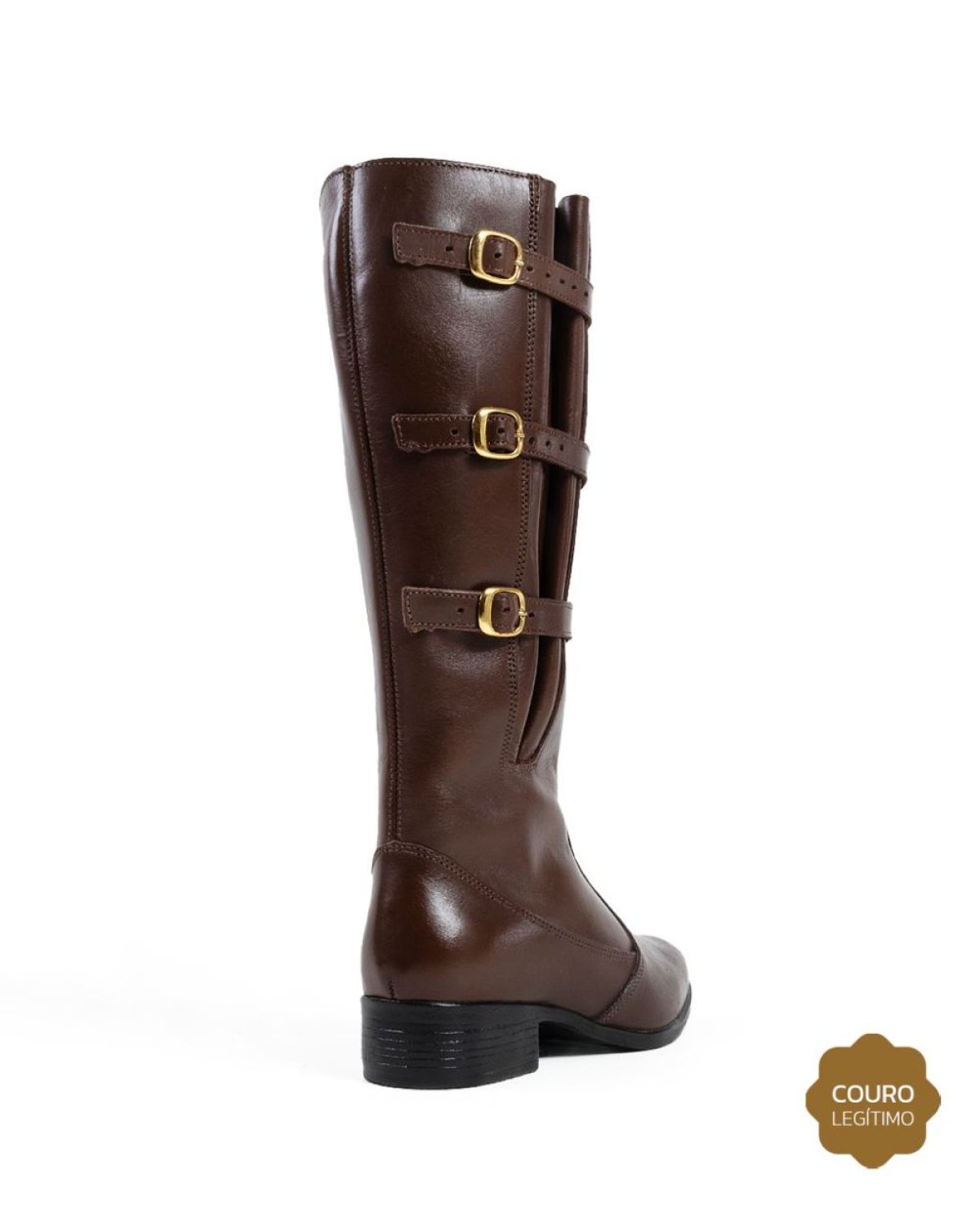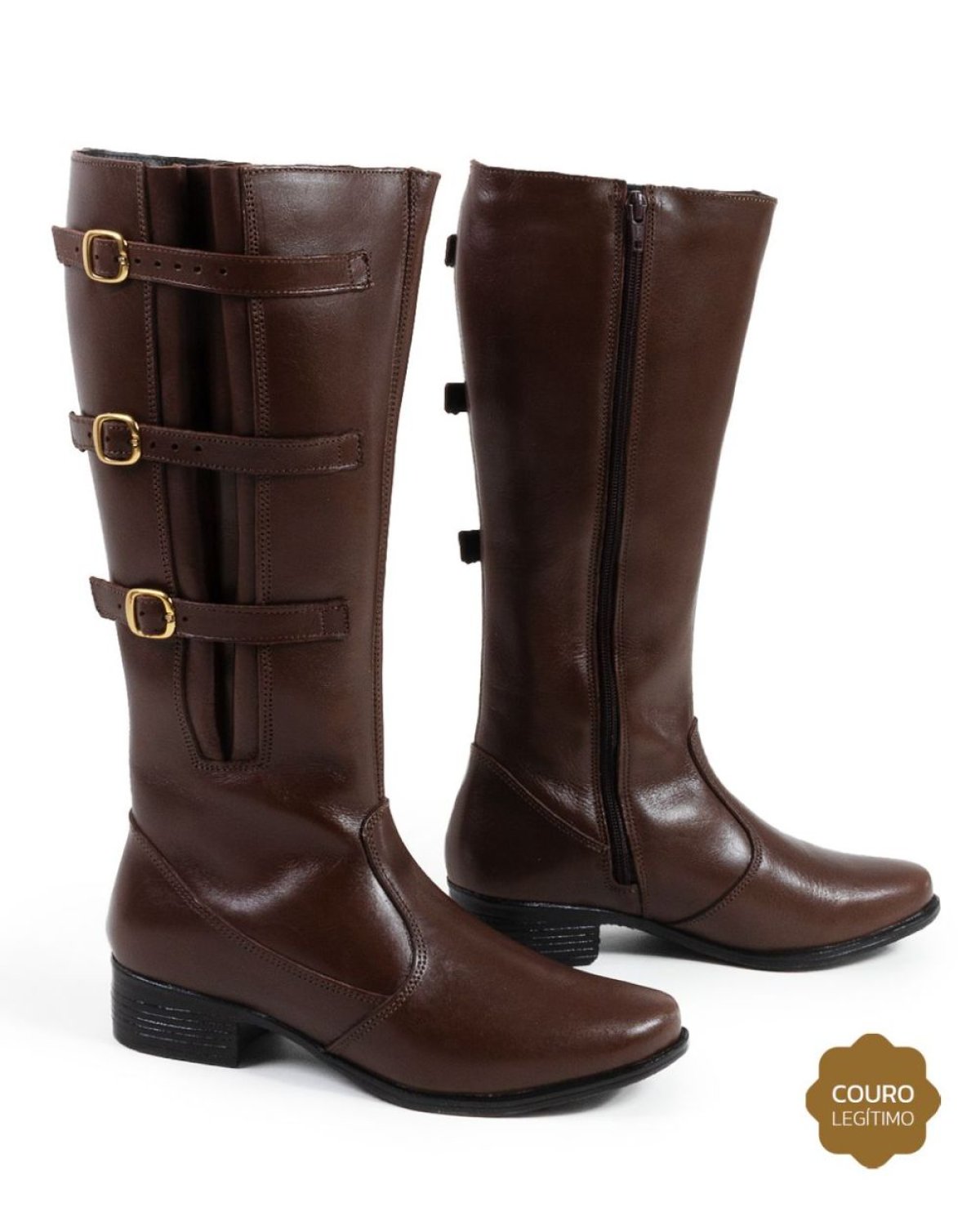 A Bota Cano Longo Feminina Couro com Fivela – Marrom é confeccionada em couro legítimo, unindo durabilidade, estilo e conforto. O modelo conta com fivela lateral e regulagem, permitindo ajuste ideal para panturrilhas mais grossas ou finas. Com bico redondo, salto baixo de 3 cm e solado TR antiderrapante, oferece estabilidade e segurança ao caminhar. Forrada internamente, é perfeita para compor looks elegantes e versáteis nos dias frios.