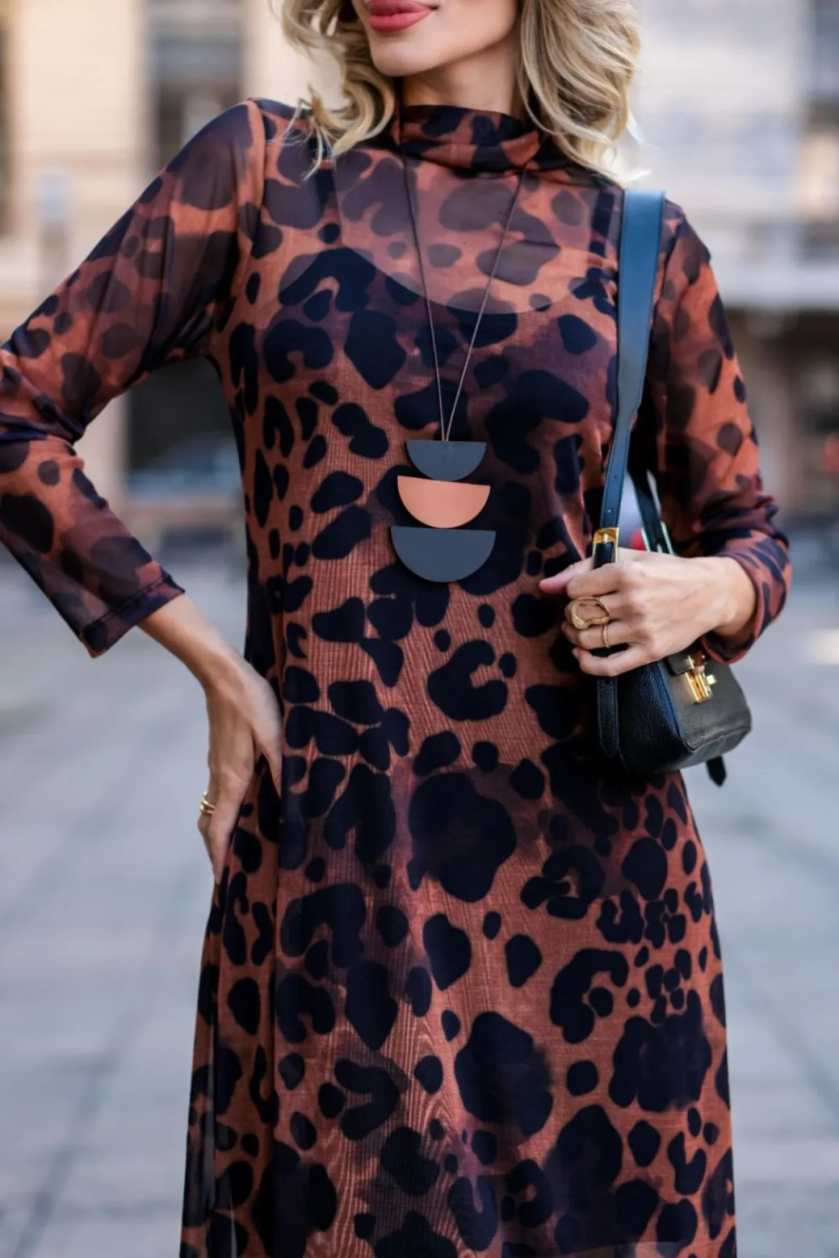 • Material: Malha de viscose com elastano, sobreposição em tule leopardo